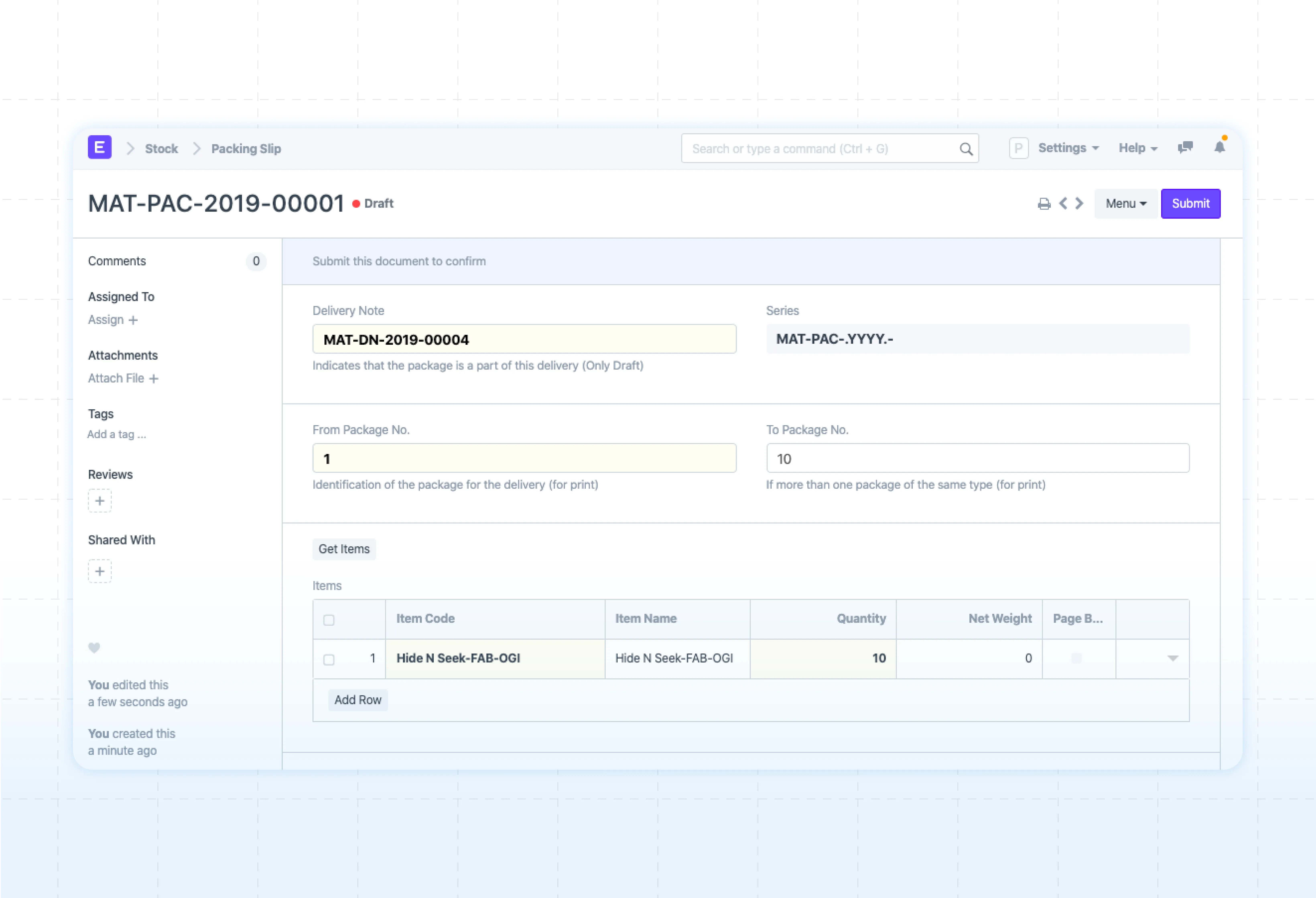 Some orders require multiple boxes. Ship orders in multiple boxes and track them against a single delivery note with ERPNext packing slip feature. Continue your wholesale distribution smoothly, whether it’s 5 boxes or 50.