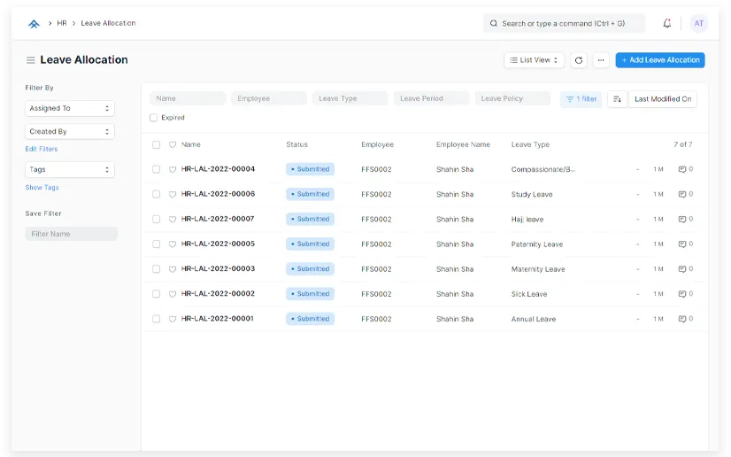 Customize leave types for employees or departmental units based on their eligibility criteria.