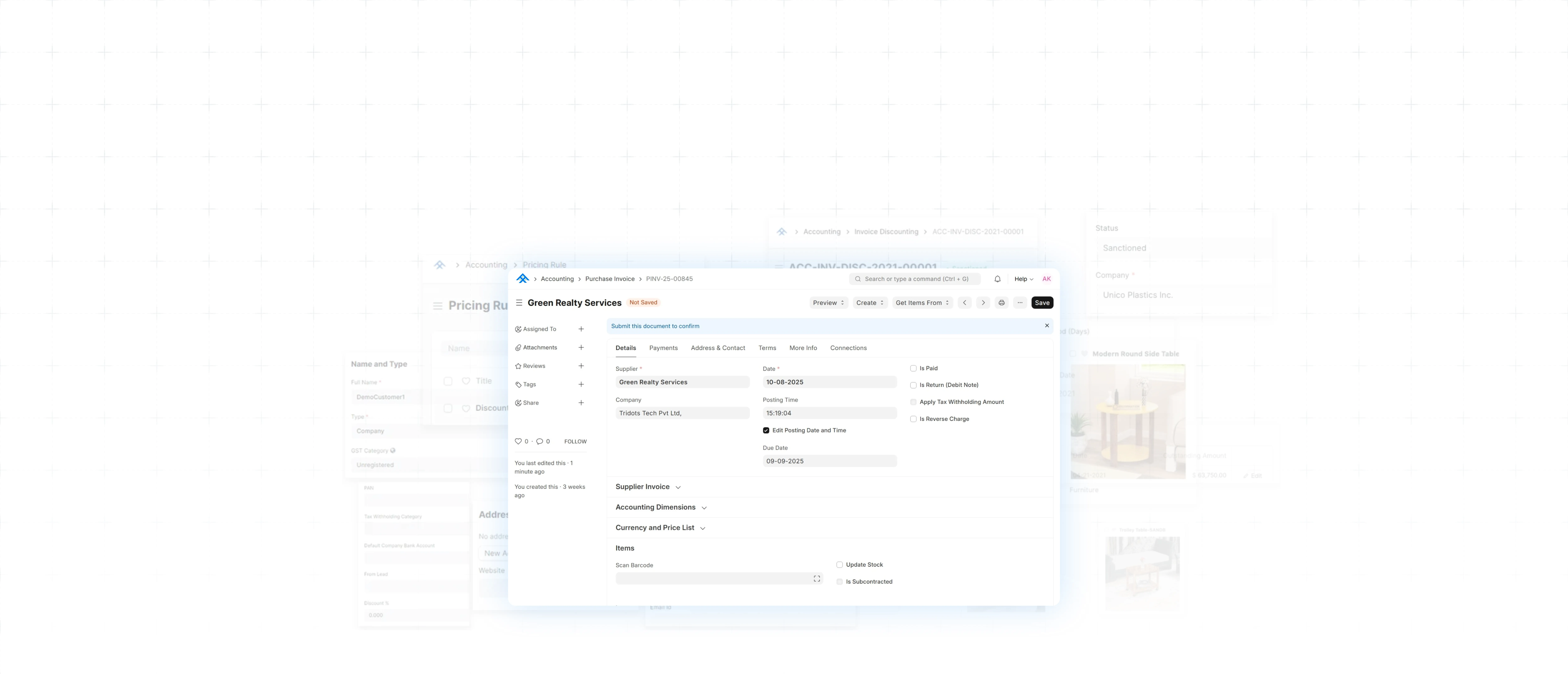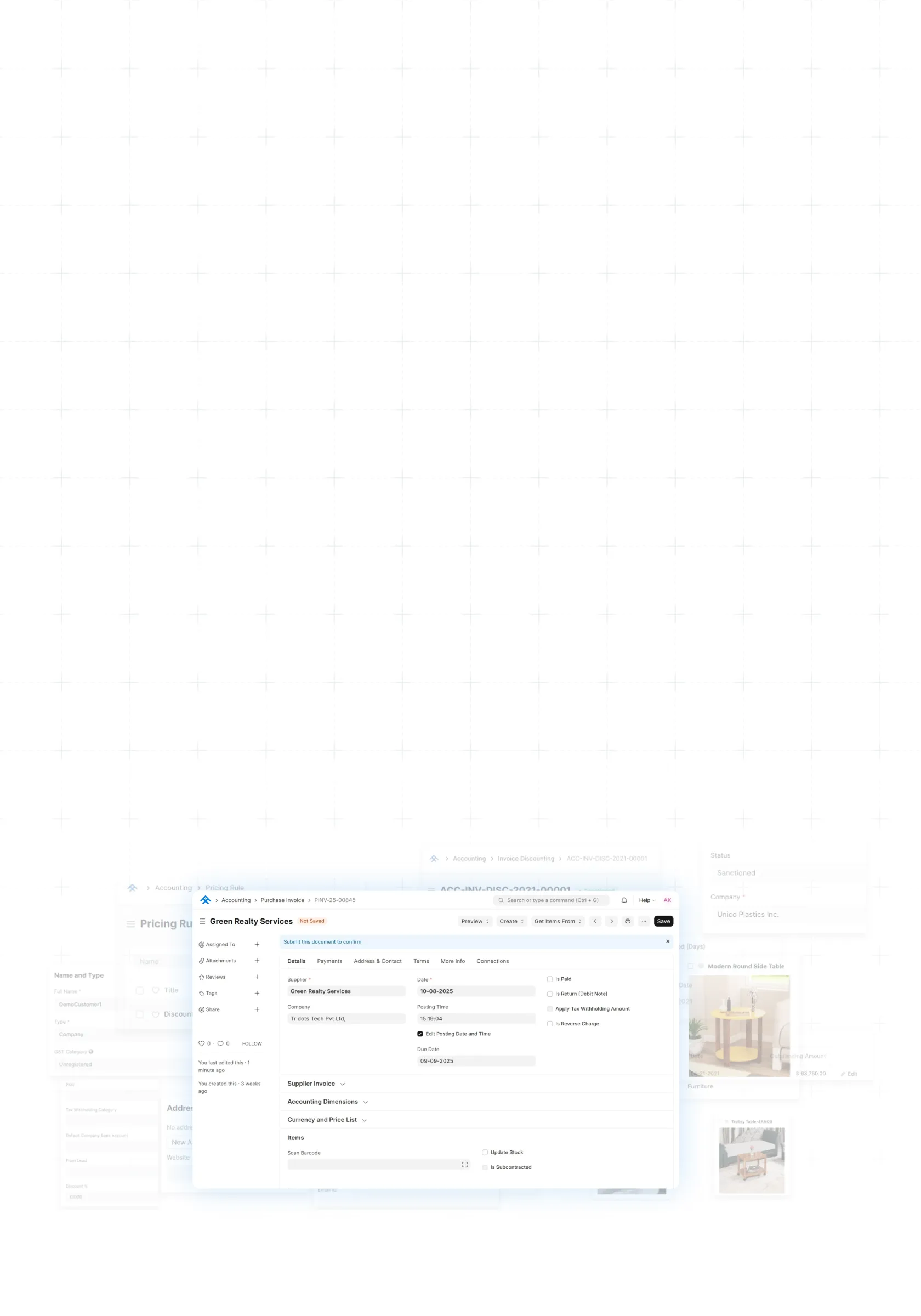 Gain complete control over your sales and purchases with a unified dashboard that tracks transactions, manages customers and suppliers, and delivers real-time business insights.