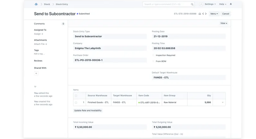 ERPNext Inventory is a cloud-based module that streamlines stock tracking, warehouse control, procurement, and order fulfillment.