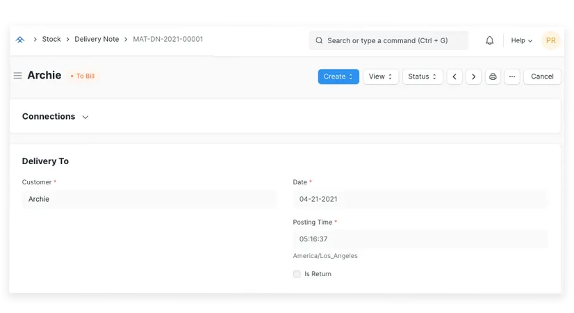 View status of the delivery note (draft, to bill, completed, return issued, cancelled, closed)