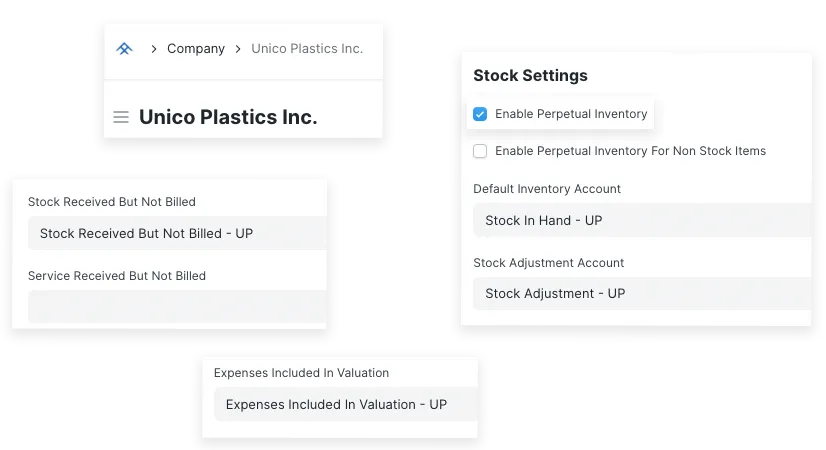 Auto or Perpetual Inventory - Default setting enabled for stock transactions