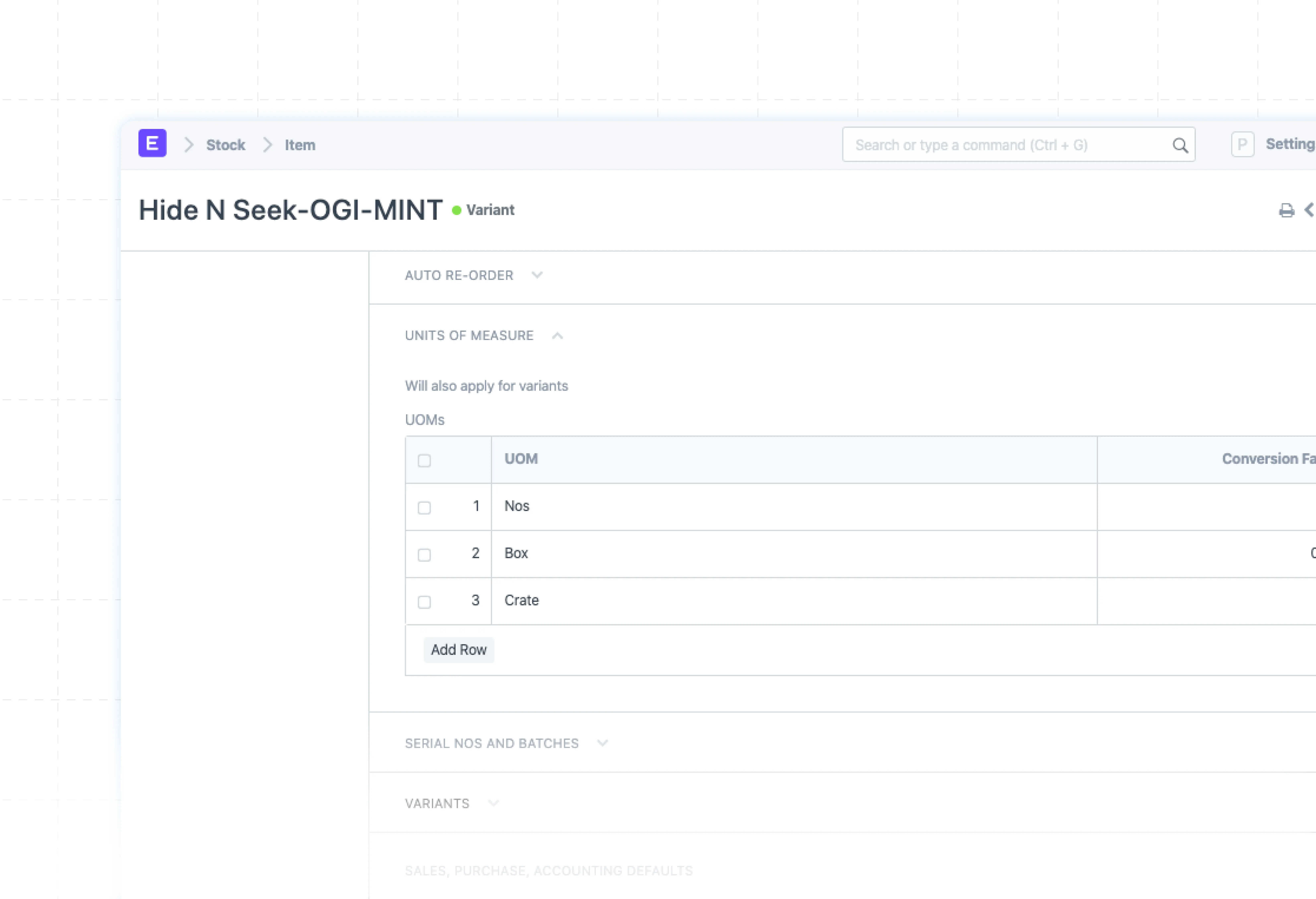 Define default Unit of Measure (UOM) settings