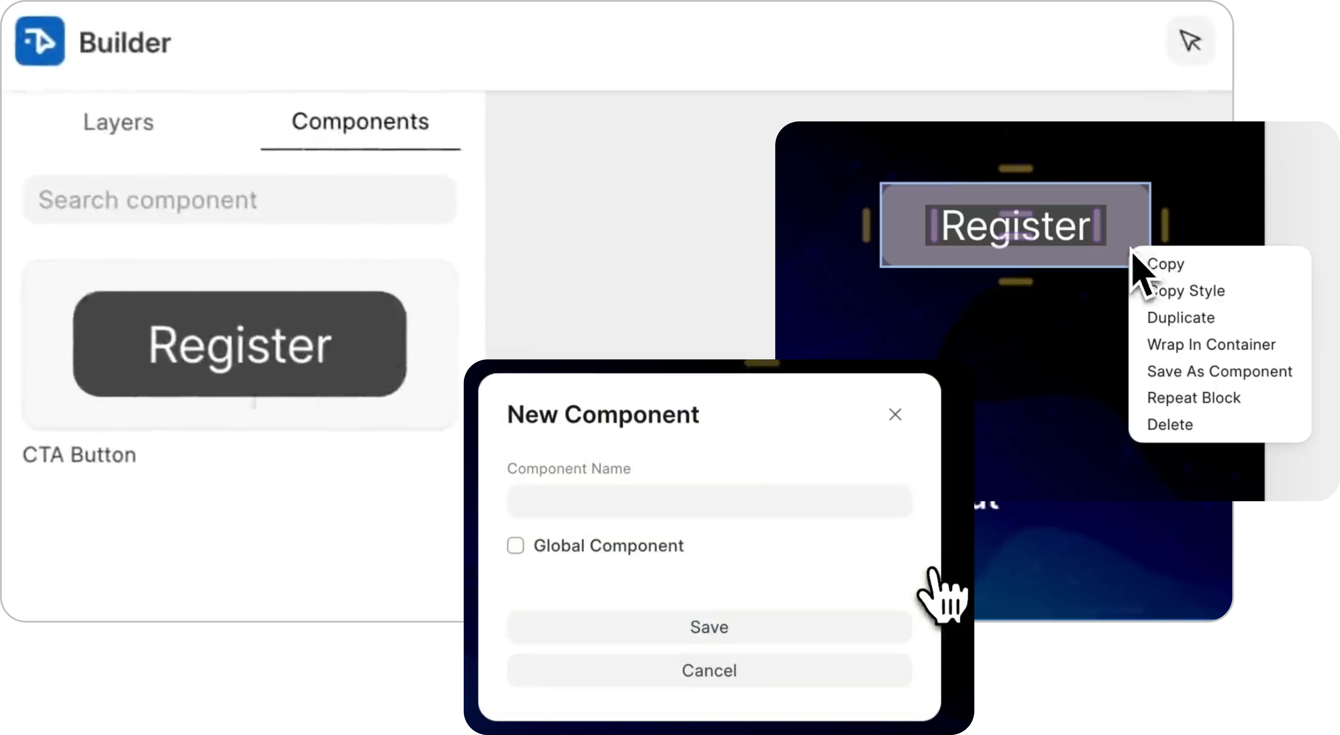Create stunning designs and publish effortlessly—all in one powerful visual builder.