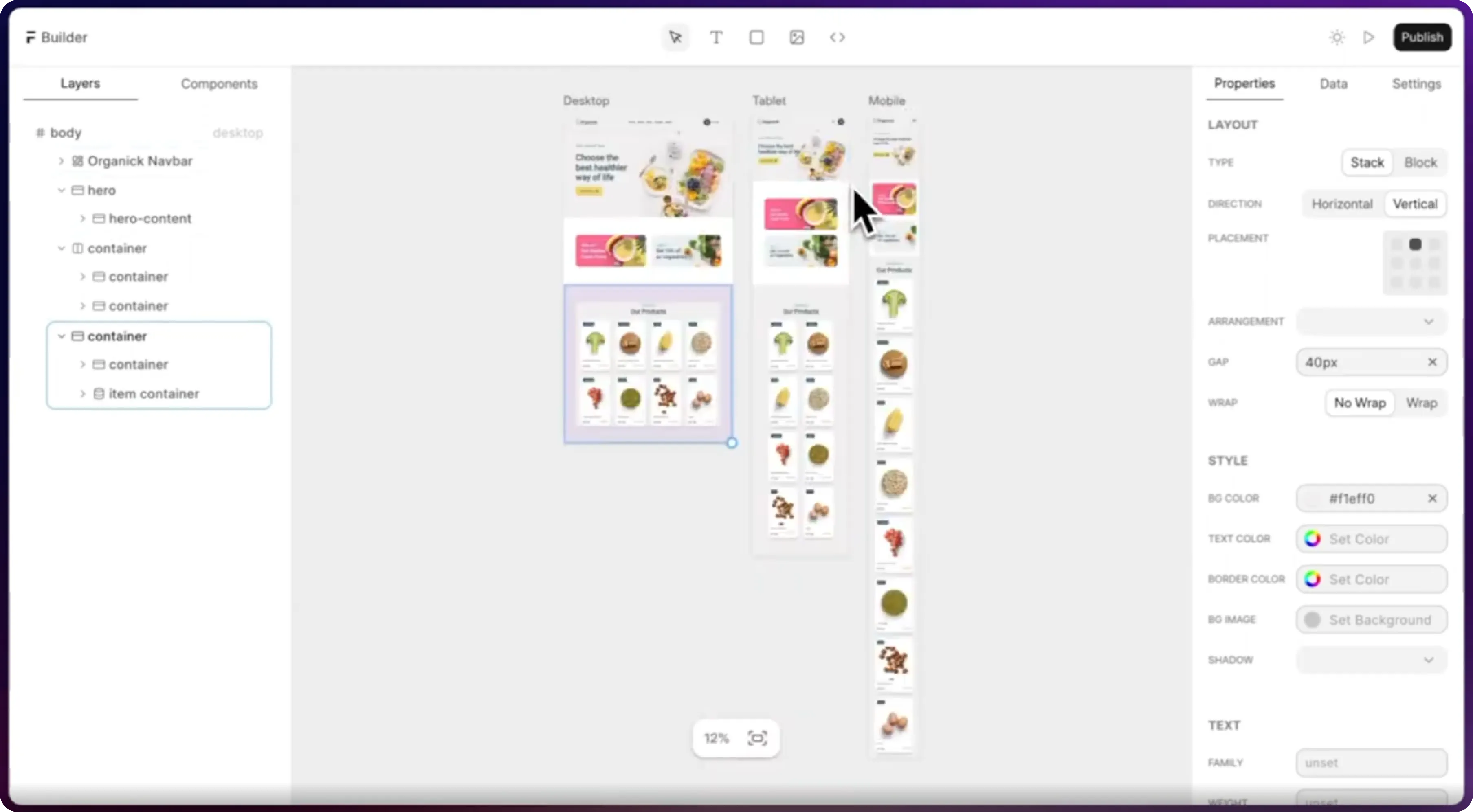Use modern layout tech like Flexbox and an intuitive drag-and-drop editor to build beautiful, responsive websites without handoffs or hacks.