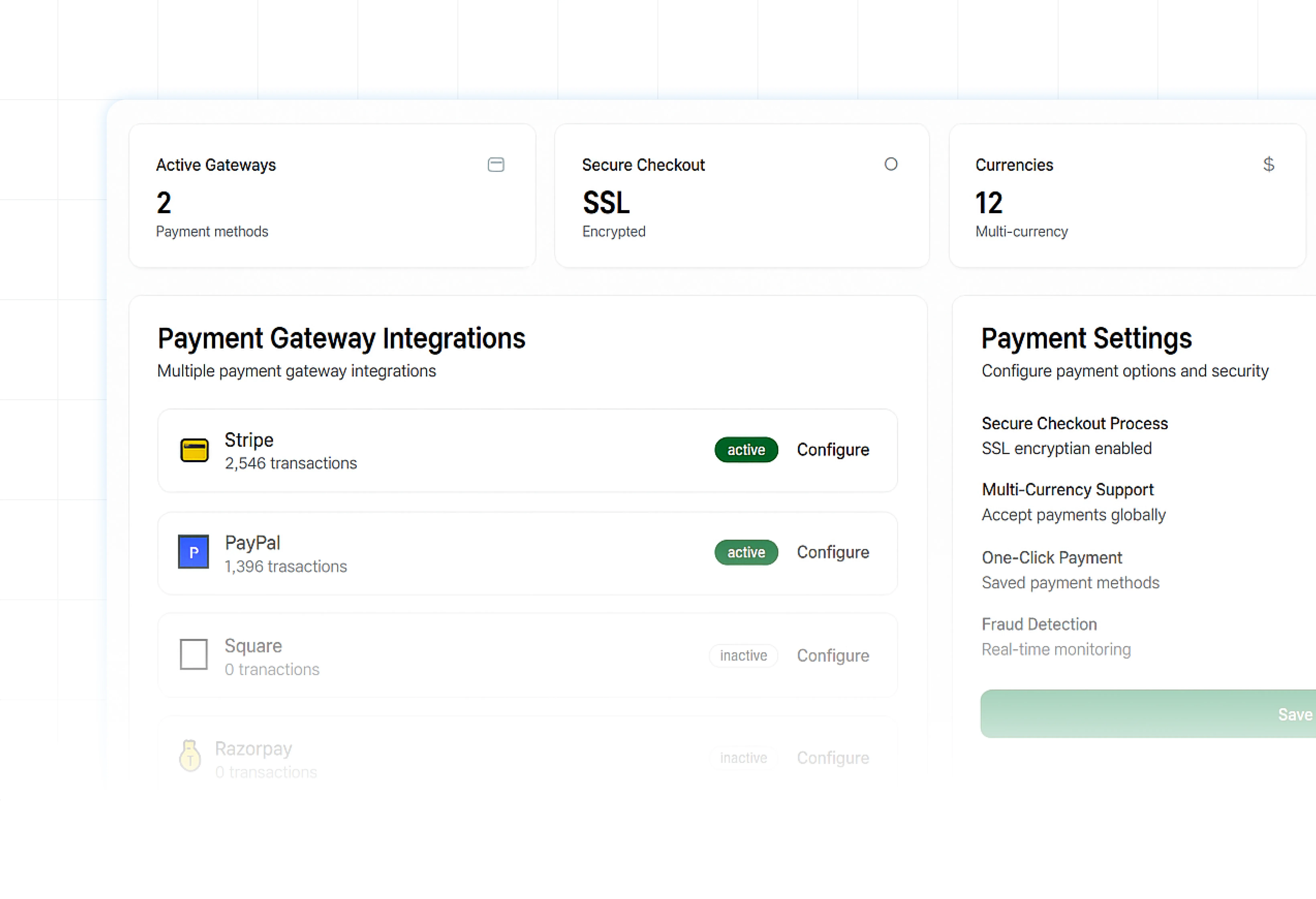 Enable secure payments, partial payments, automated invoices, e-wallets, and refunds seamlessly.