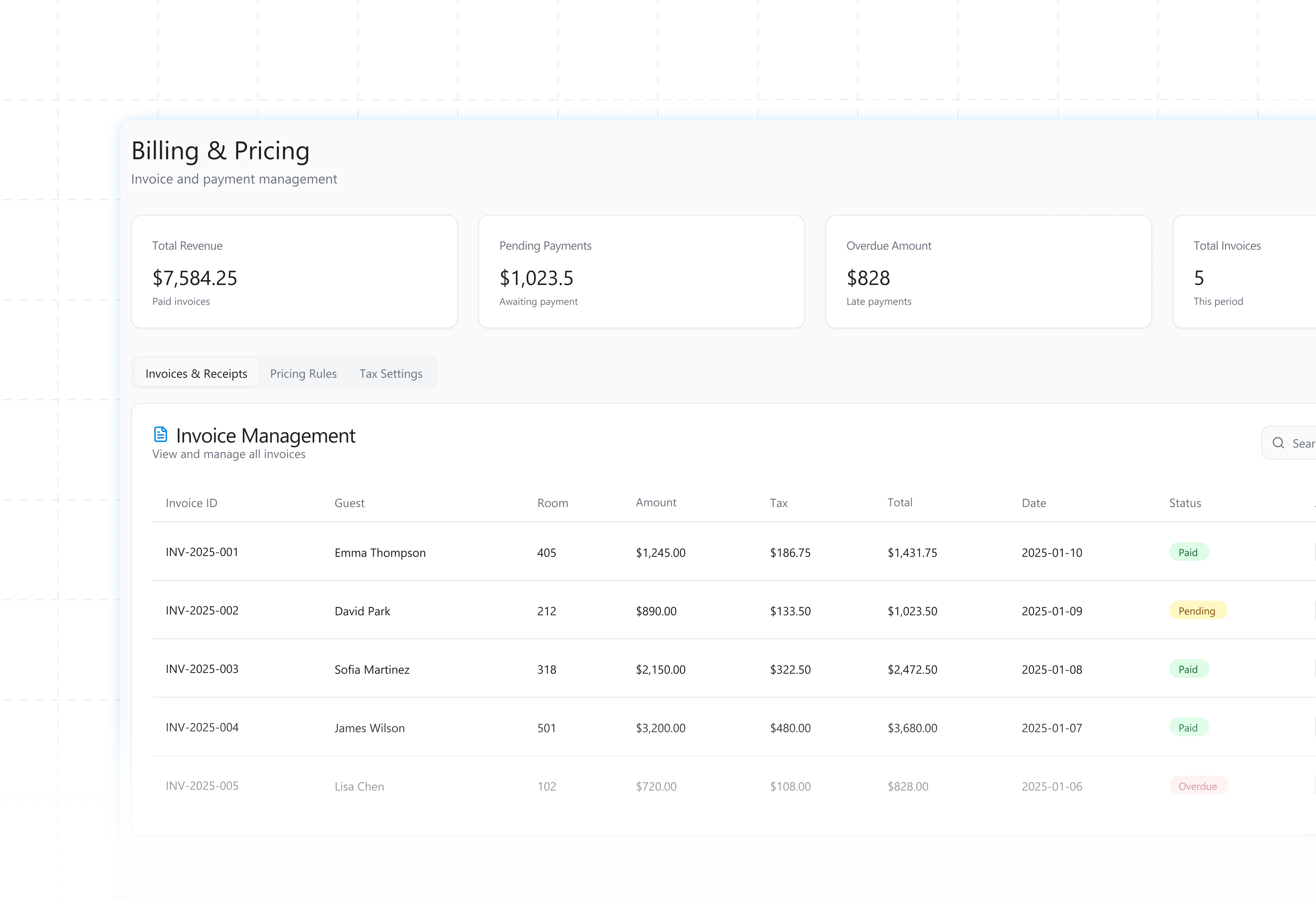 Create custom or auto-generated invoices for foreign guests.