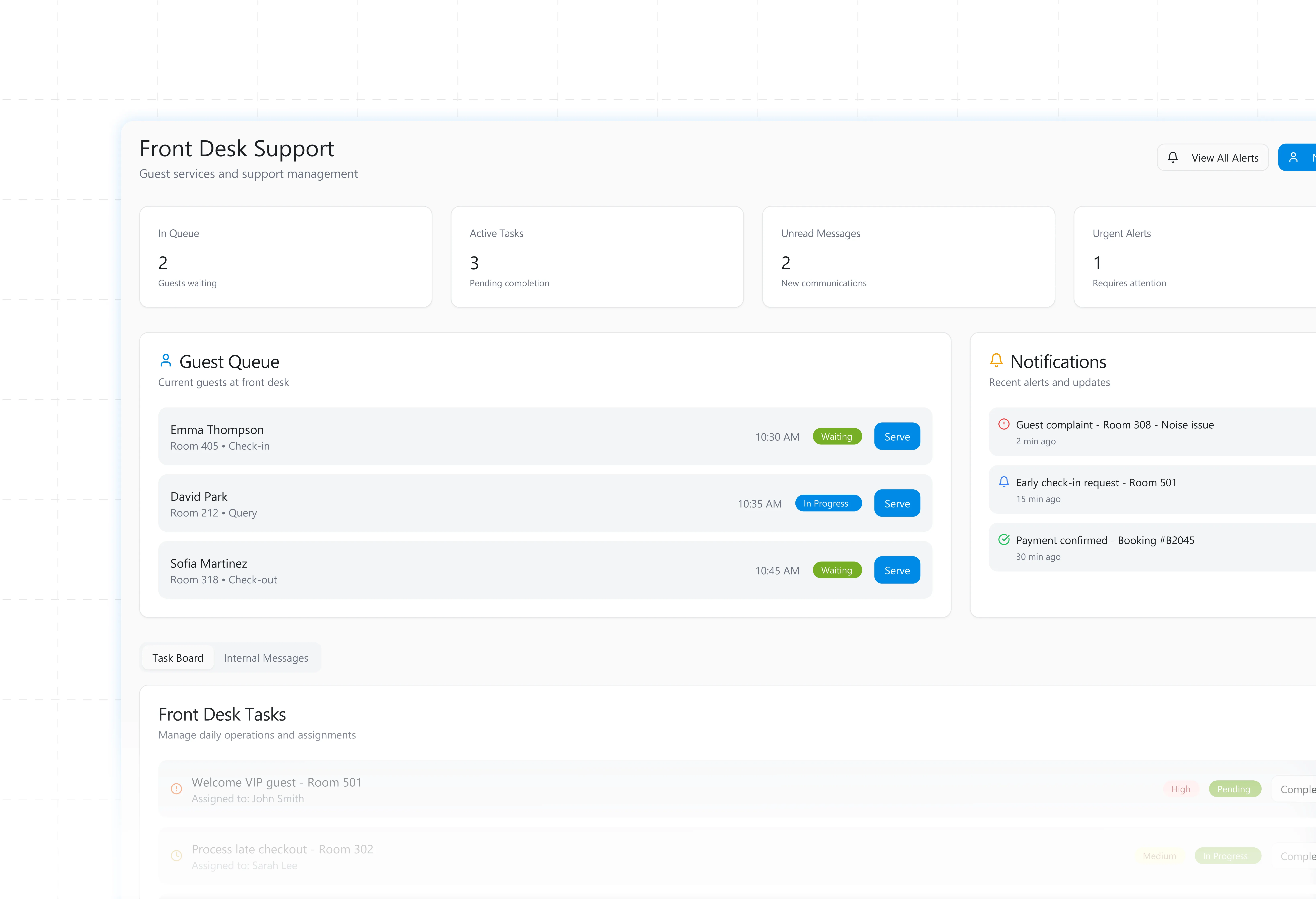 Easily track guest arrivals and departures to ensure smooth operations and clear communication.