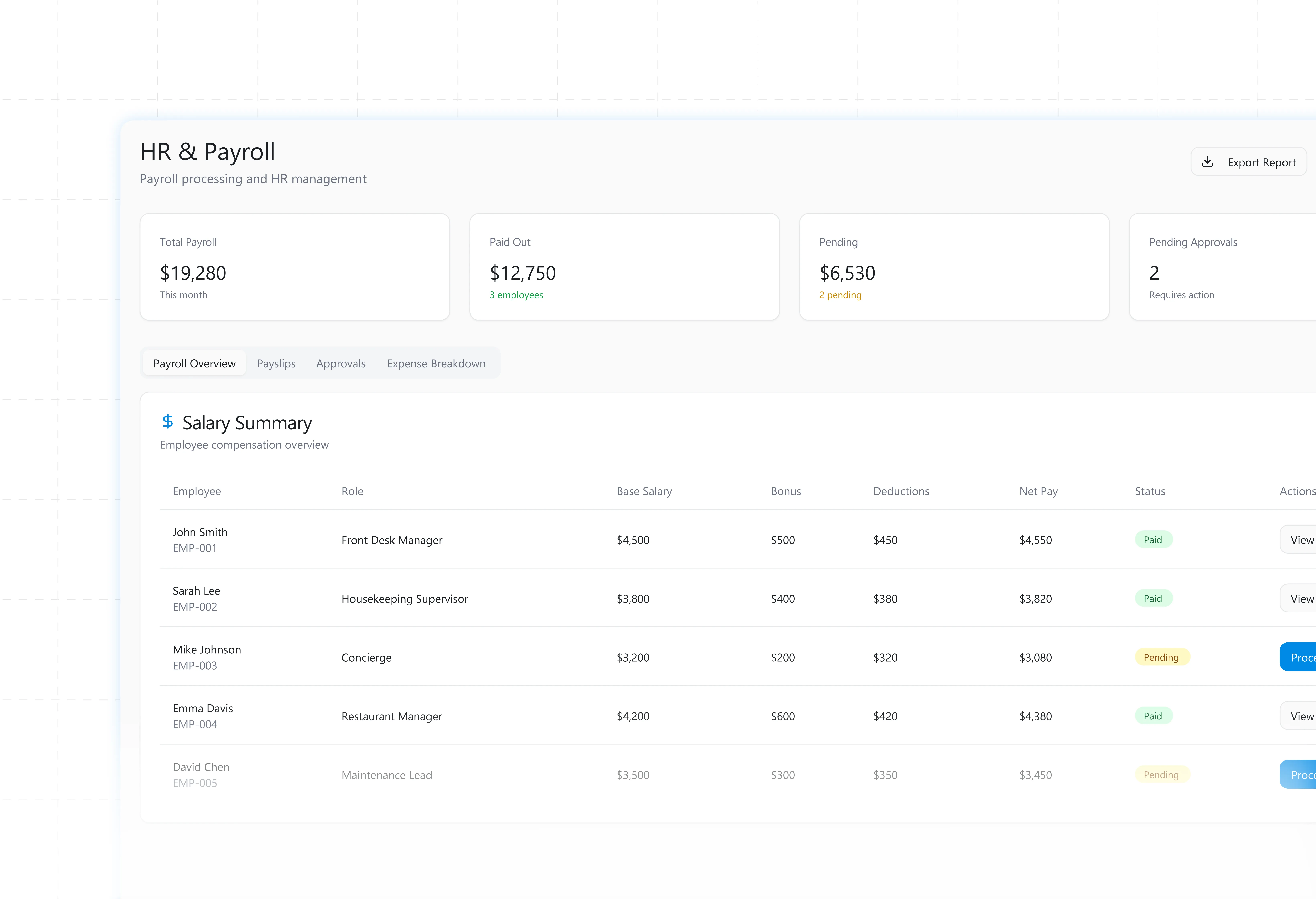 Manage payroll, performance reviews, and appraisals efficiently.