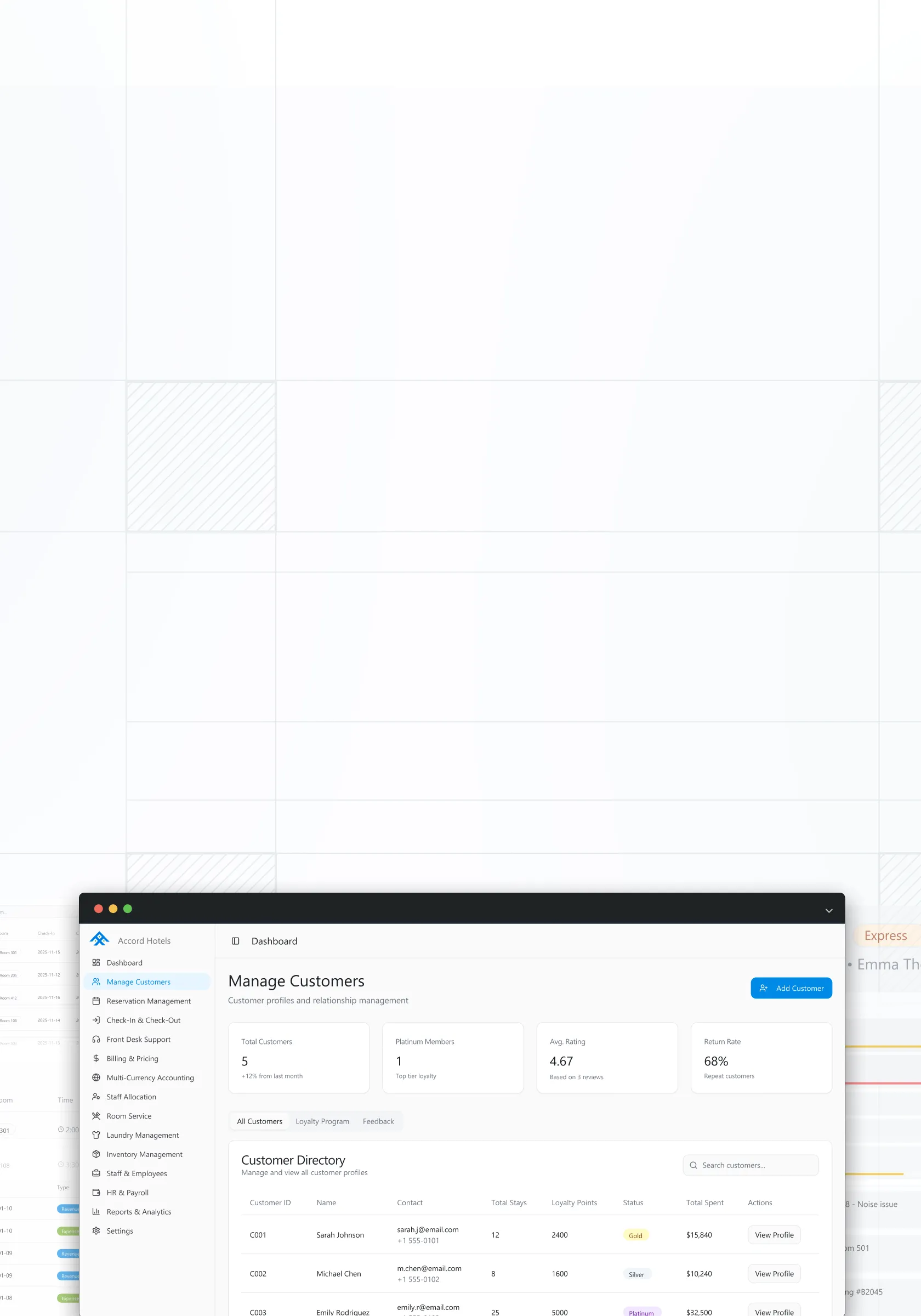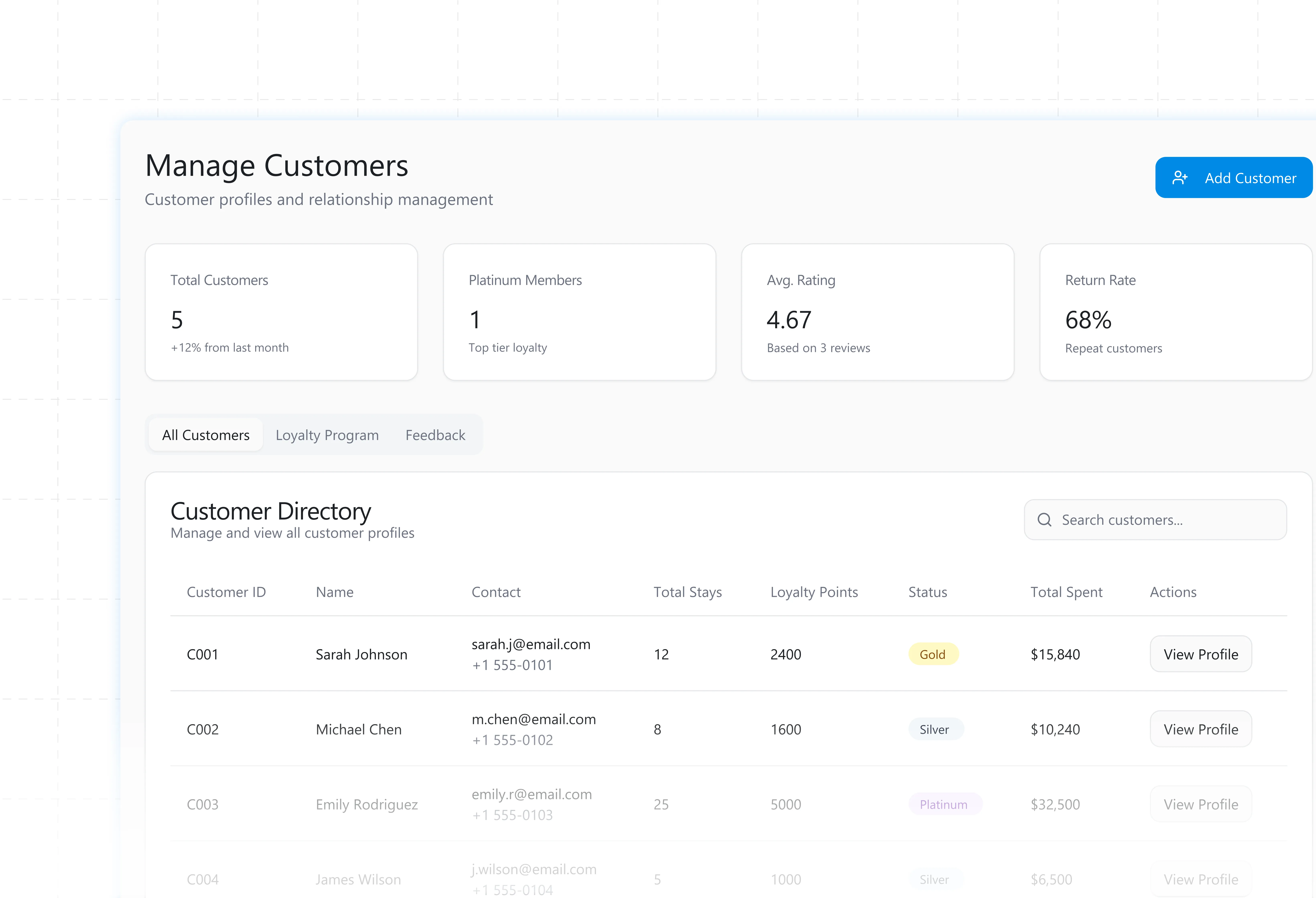 Track guest history for personalized service.