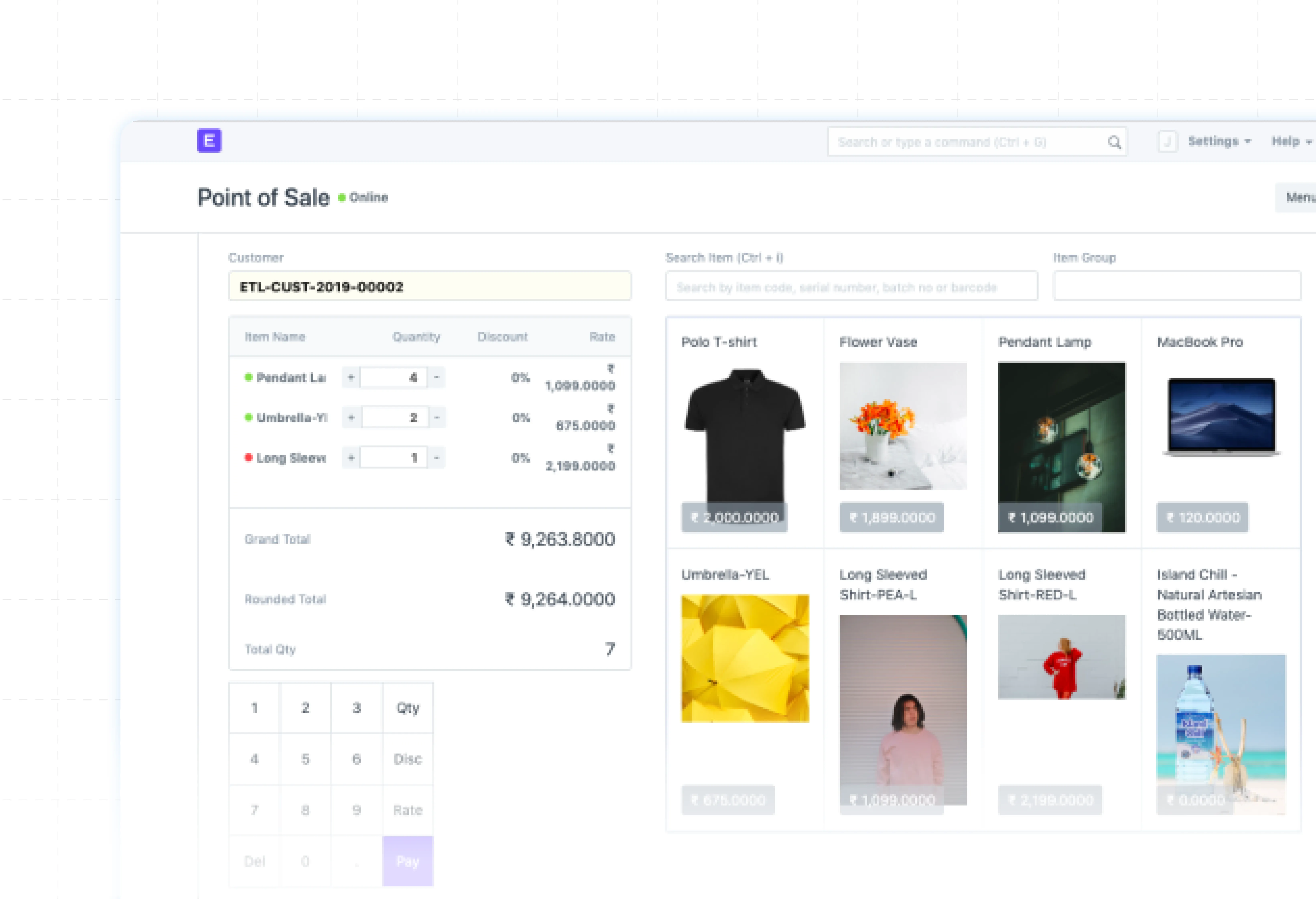 Apply taxes and manage purchase details effortlessly.