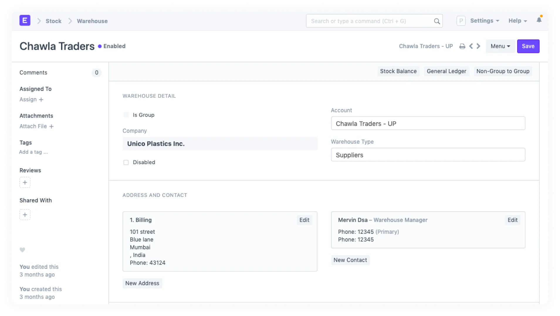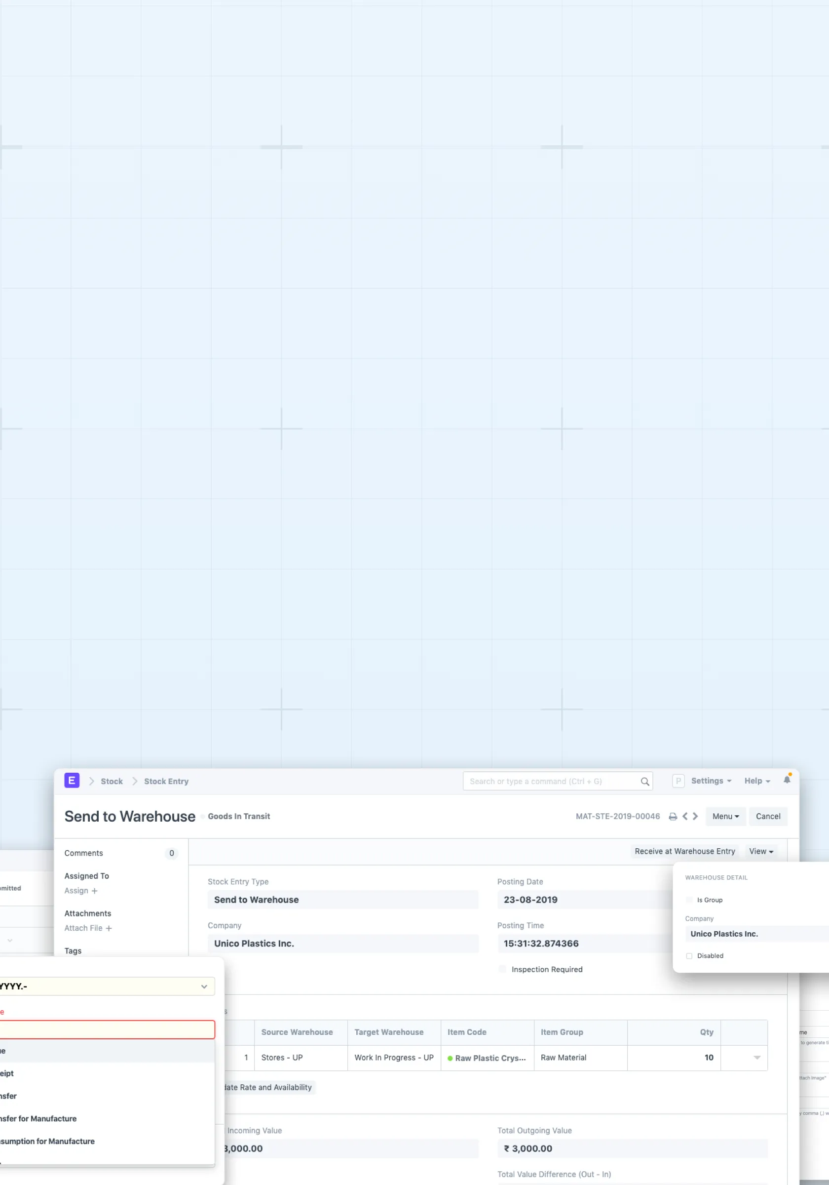Easily manage multiple warehouses in one ERPNext system with total visibility over your inventory and operations.