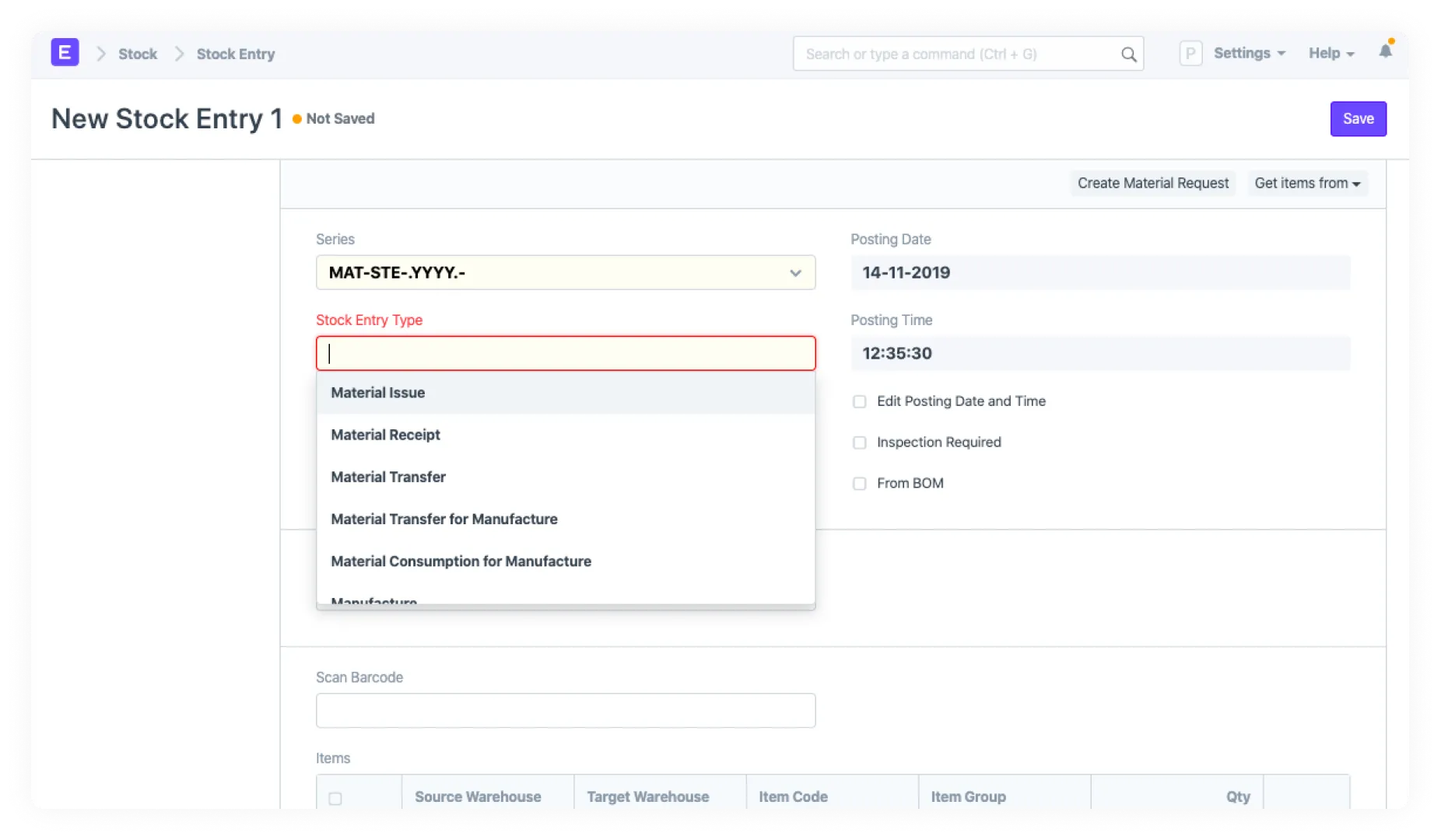 Simplify stock transactions like transfers, repacks, and adjustments directly from ERPNext.