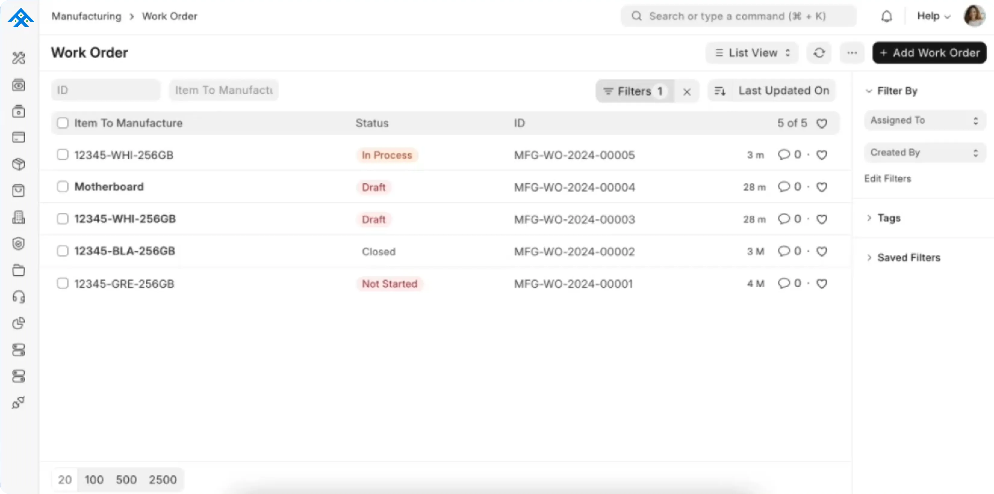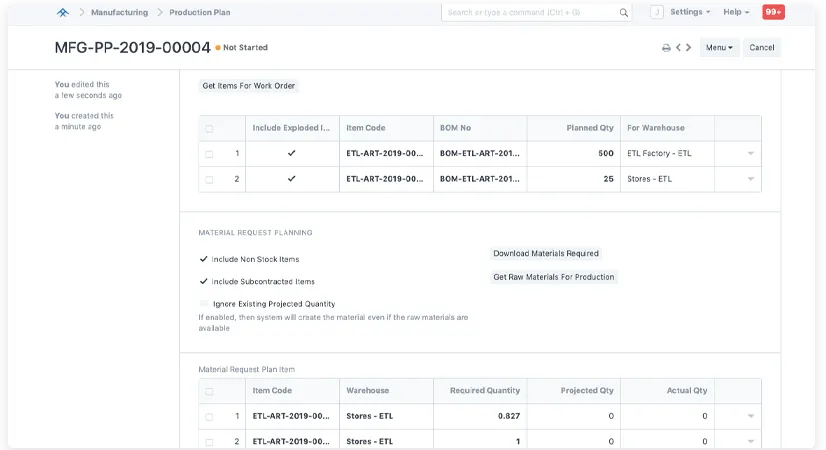 ERPNext automates BOMs, work orders, and MRP for efficient production.