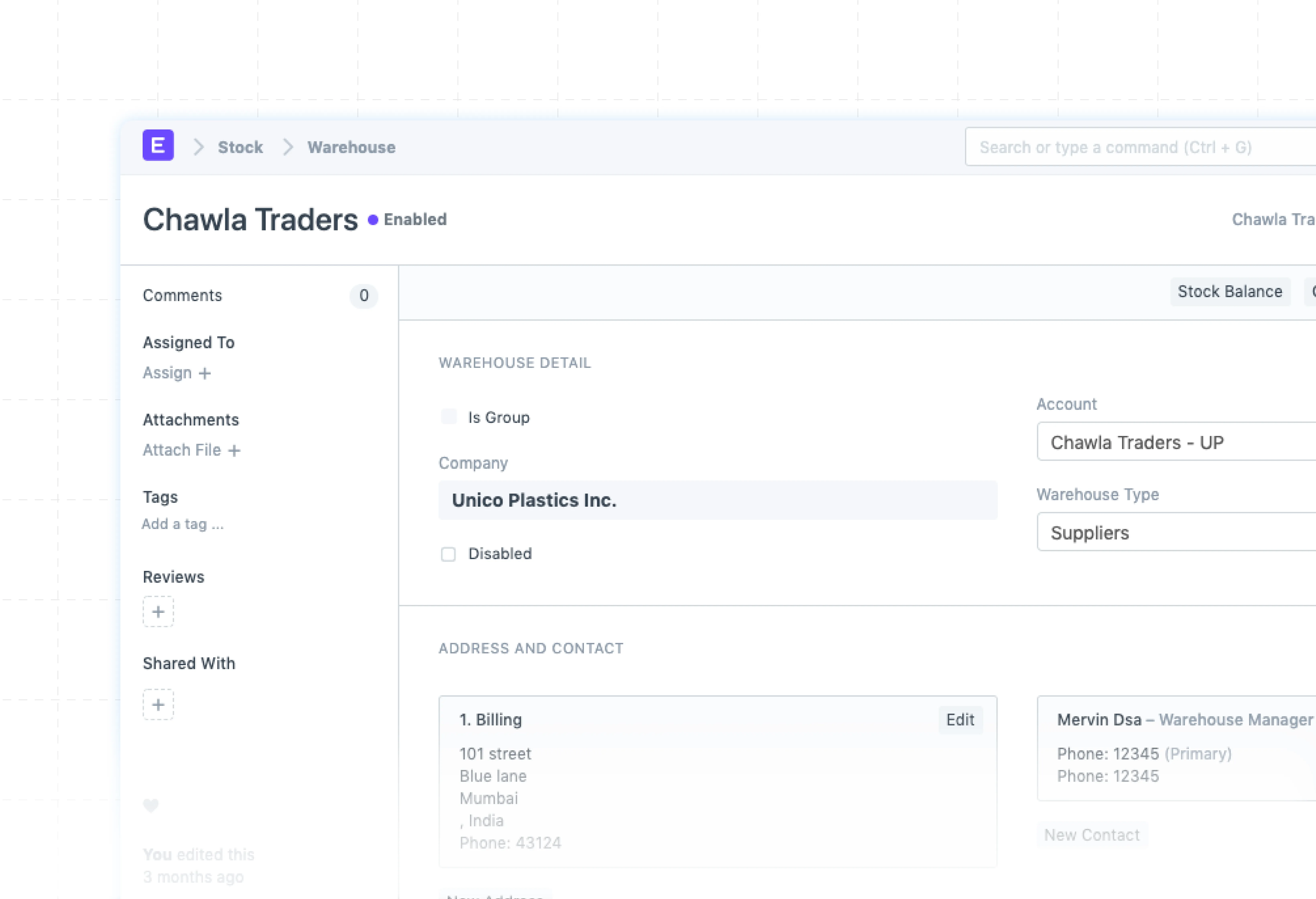 Seamlessly connect warehouses with financial accounts in ERPNext.