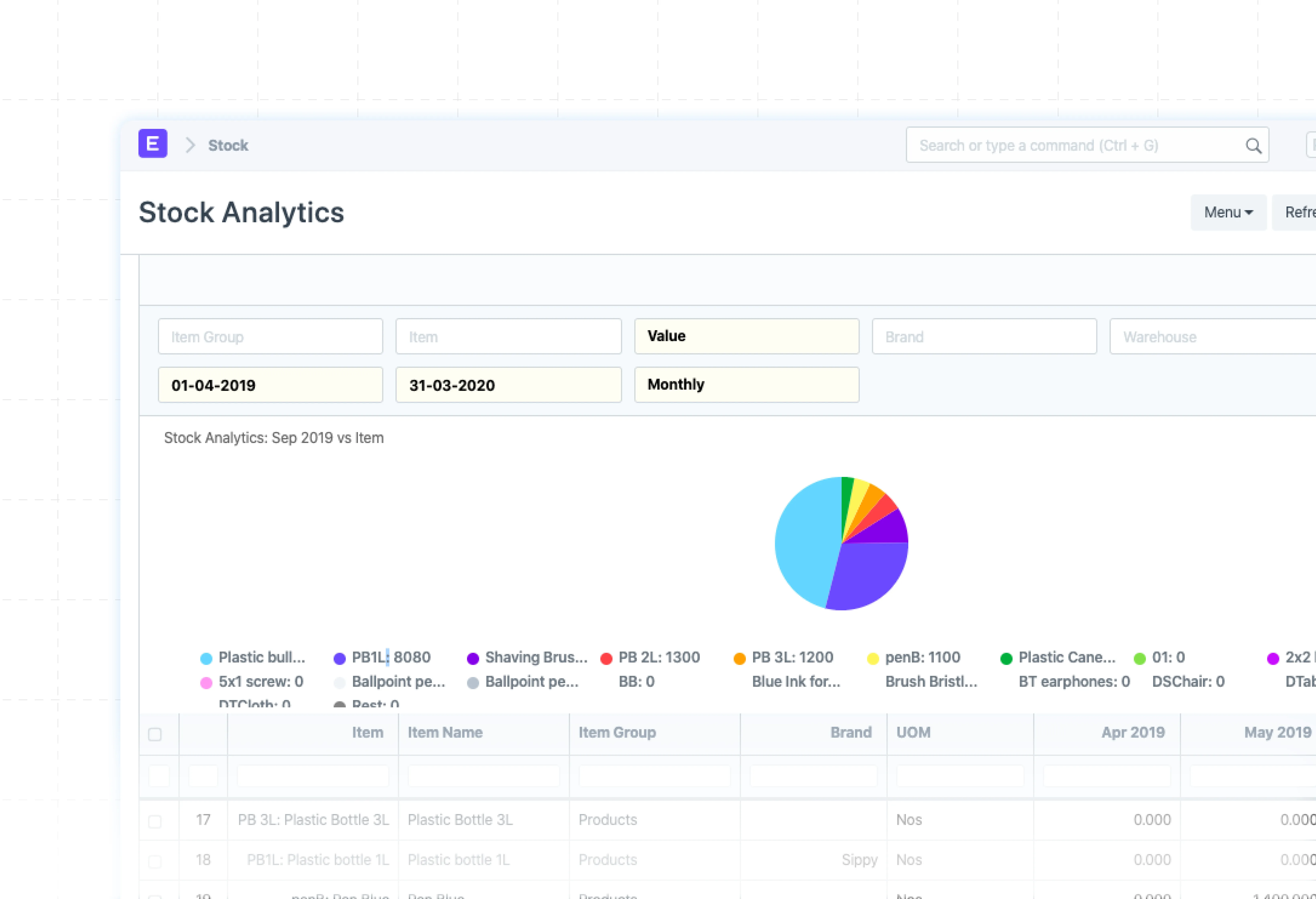 Get detailed stock analysis with item and UOM data