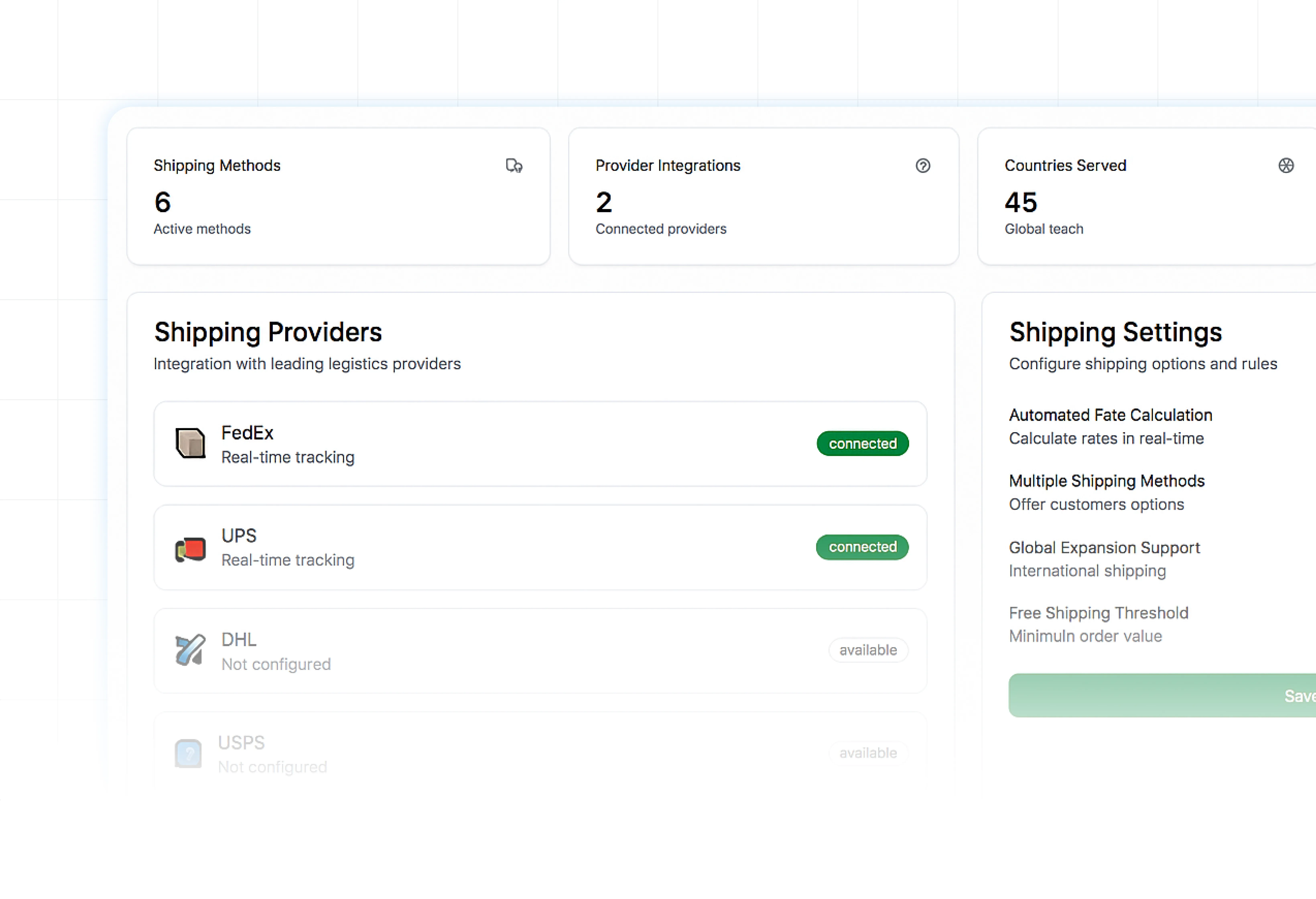 Offer global shipping with multiple methods, integrations, and real-time shipment updates.