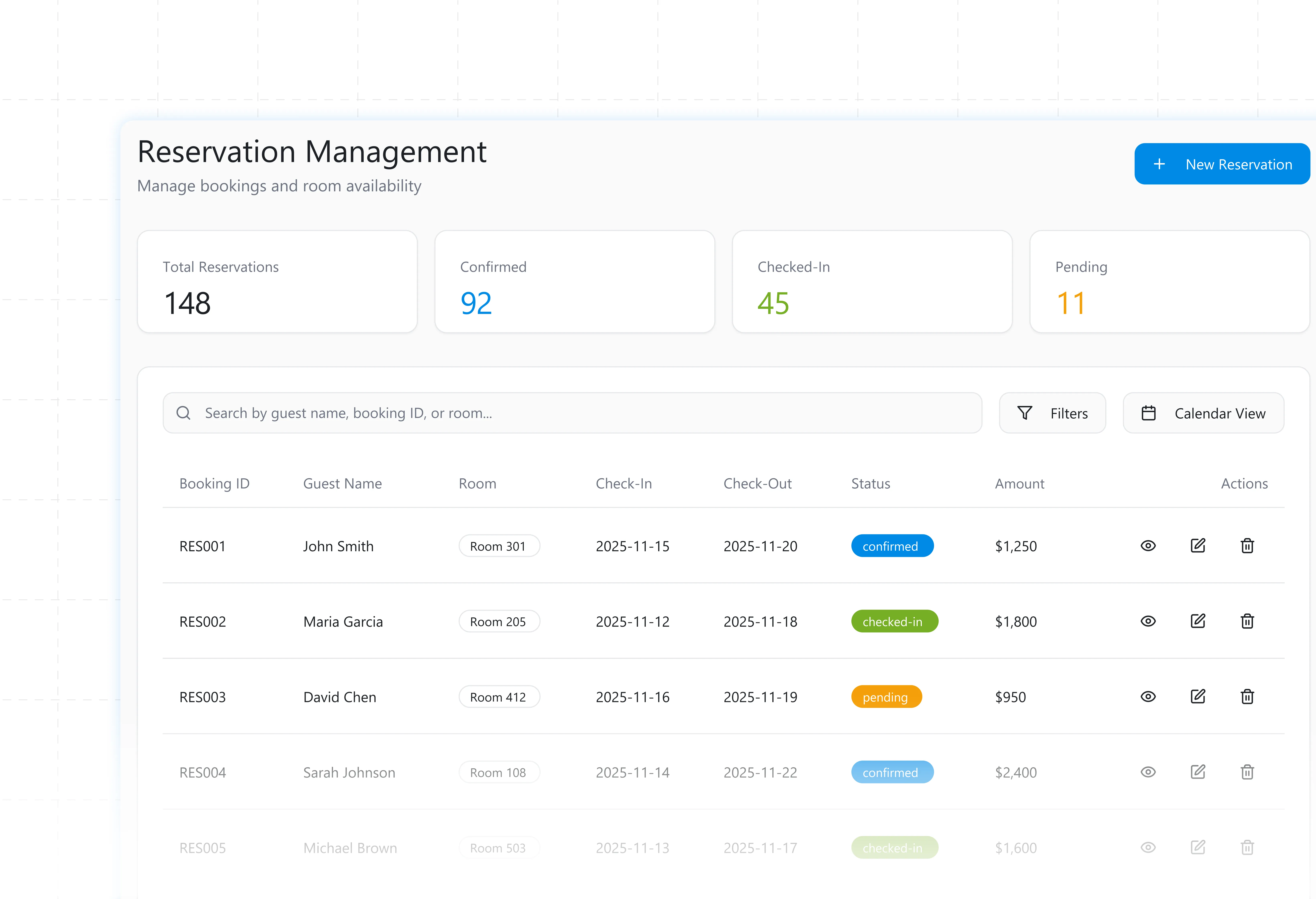 Easily track guest arrivals and departures to ensure smooth operations and clear communication.