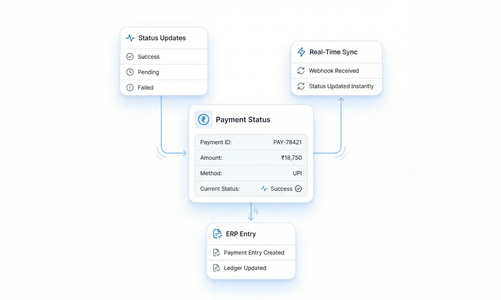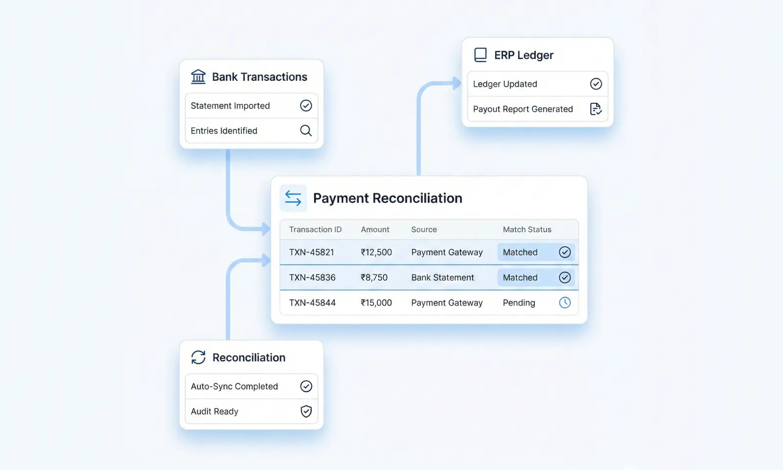 It connects ERPNext with payment gateways to automate collections, payouts, and reconciliation.