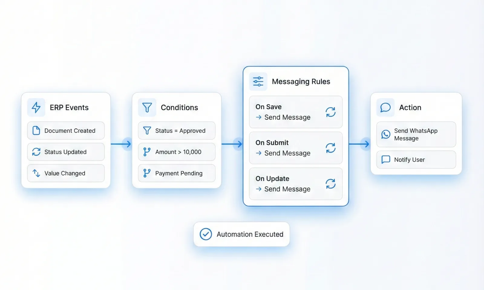 Automate WhatsApp messaging, event triggers, and communication workflows directly from ERPNext using WATI WhatsApp Business API.