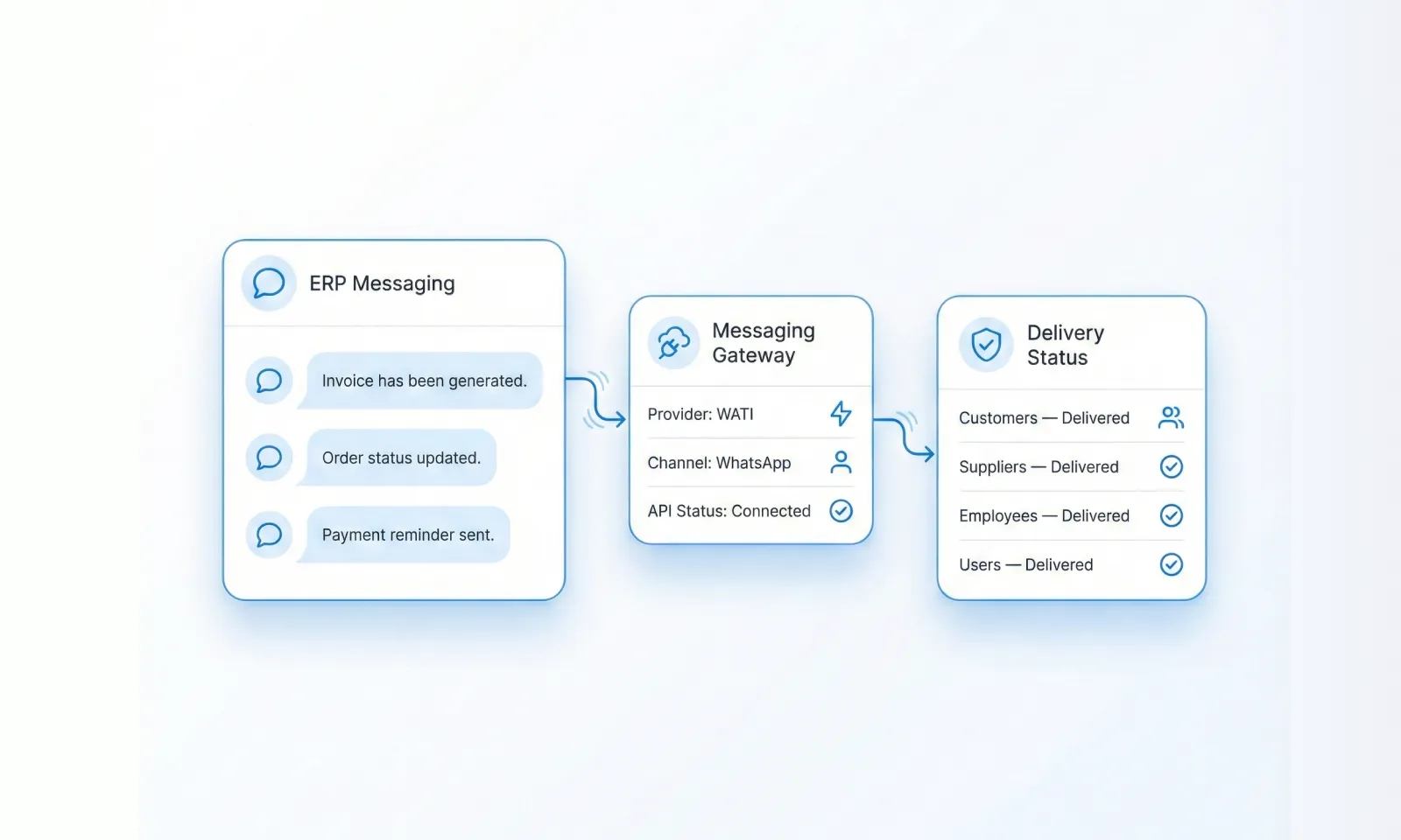 It connects ERPNext with WATI to automate WhatsApp Business messaging from ERP workflows.